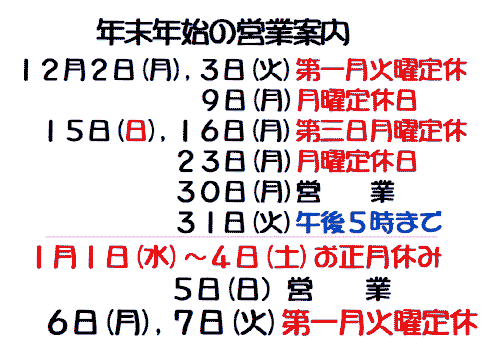 毎週月曜日 第一月・火曜日、第三日・月曜日連休